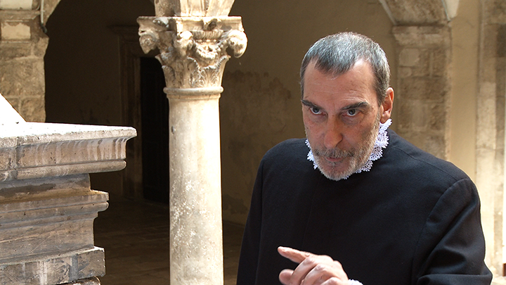 No filme, o protagonista não aparece sempre "in persona". Além dele, são introduzidos também seus amigos e seus inimigos, que revelam os diversos aspectos do homem e do artista. Biografia, técnica da composição, lógica subjacente às ações e às escolhas são apresentadas através da luz refletida de seus contemporâneos que comentam ou recordam fatos importantes: membros do clero romano, príncipes, músicos, alguns de seus ex-alunos, e seus familiares, e, por fim, um moderno regente de coro de Roma de hoje, filmado em campo, enquanto trabalha com seus cantores. O percurso narrativo visa contextualizar o artista e sua obra em um ambiente de grandes contradições e tensões conceituais, artísticas, sociais e religiosas.